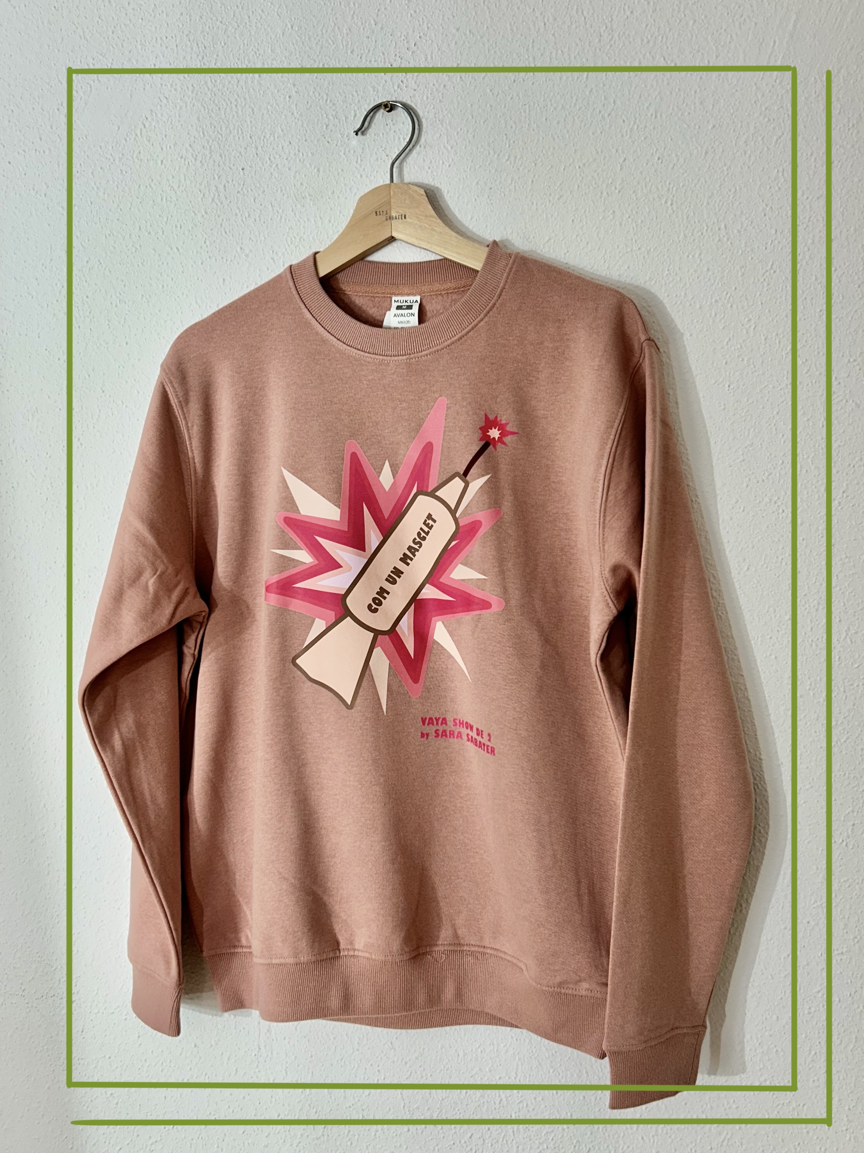Sudadera infantil rosa palo con motivo estampado Com un Masclet de VayaShowde2 by Sara Sabater con borde de lentejuelas.